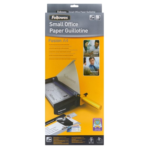 Gilotyna do użytku w małym biurze.Do małego natężenia pracy. Ostrze ze stali nierdzewnej zapewnia jednolite cięcie.Tnie jednorazowo do 10 arkuszy (80g) do formatu A4.Podstawowe zastosowanie. Możliwość cięcia papieru, plastikowych okładek i zdjęć.Bezpieczna. Specjalna osłona SafeCut chroni przed zranieniem w trakcie pracy.Łatwe przechowywanie i transport. Osłona SafeCut może być złożona na płasko na podstawie oszczędzając miejsce. Gilotyna może być ustawiona pionowo na półce.Wytrzymała. Metalowa baza zintegrowana z antypoślizgowymi nóżkami.Dokładna. Docisk papieru zapobiega przesuwaniu się dokumentu podczas cięcia.Łatwe użytkowanie. Miarki cięcia dla różnych rozmiarów dokumentów, zdjęć i do cięcia pod kątem.Ergonomiczna konstrukcja. Wgłębienia w podstawie ułatwiają przenoszenie.Certyfikat bezpieczeństwa TÜV & GSGwarancja na urządzenie 2 lata.