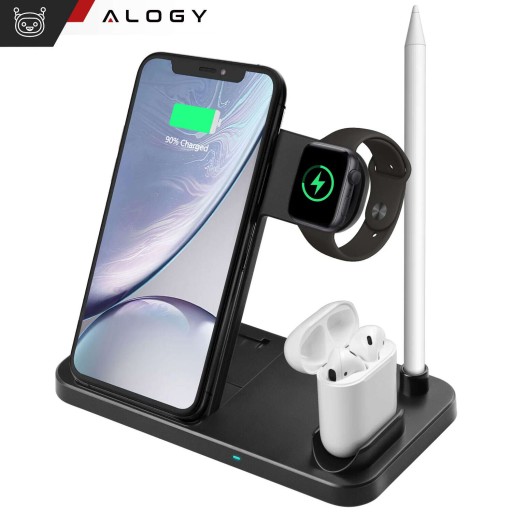 ▶️ Ładowarka indukcyjna Qi 4w1 Alogy do Apple iPhone/ Watch/ AirPods/ Pen Czarna