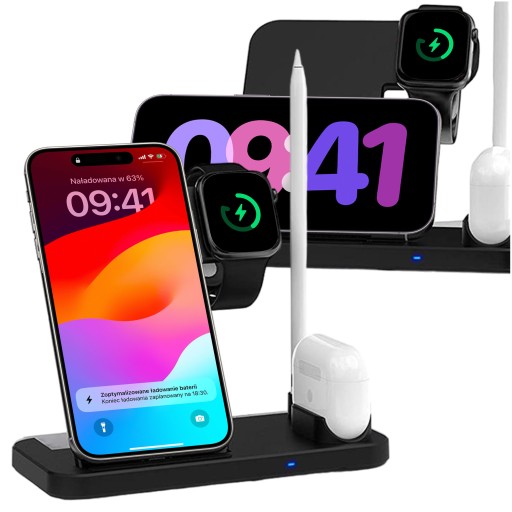 ✅ Ładowarka kompatybilna jest ze smartfonami Apple iPhone oraz Android z obsługą Qi, ze słuchawkami Apple Airpods, Apple Pen oraz z zegarkami Apple Watch obsługującymi standard ładowania bezprzewodowego Qi.
