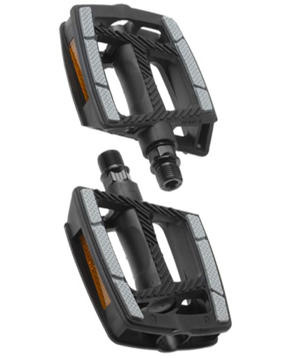 Wytrzymałe pedały rowerowe z odblaskami do rowerów miejskich oraz trekkingowych.