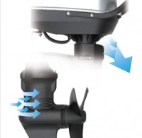 Specjalny system dodatkowo chłodzi silnik podczas pracy w wodzie. Zabezpiecza silnik przed przegrzaniem.