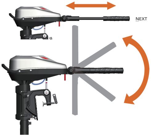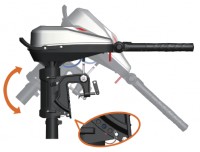 Silnik wyposażony jest w teleskopowy rumpel o regulowanej długości od 24 do 40cm. Możliwość regulacji rączki aż o 180o, zapewnia wygodne sterowanie podczas pływania. Przesuwając rączkę maksymalnie w dół silnik jest złożony do wygodnej pozycji transportowej.