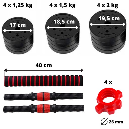 ✔️ 4×2 kg (średnica: 19,5 cm, grubość: 3,5 cm, śr. otworu: 30 mm)