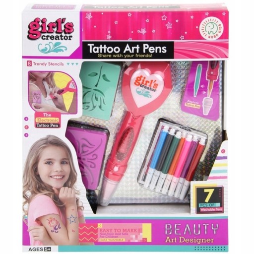 Poczuj się jak w prawdziwym studiu tatuaży. Tworzenie tatuaży nie będzie miało już przed tobą żadnych tajemnic. W zestawie znajdziesz maszynkę do robienia tatuażu, gdzie stworzysz swój idealny tatuaż. Maszynkę można w wygodny sposób nosić ze sobą. Zestaw rozwija kreatywność dzieci, poprzez możliwość tworzenia własnych oryginalnych wzorów.
