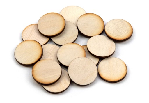 Zestaw 10 żetonów wykonanych ze sklejki brzozowej.