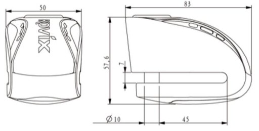 Blokada tarczy hamulcowej KOVIX KNX10 z wbudowanych alarmem o natężeniu dźwięku 120 dB z możliwością ustawiania opcji syreny ON/OFF. Zamek ze stali nierdzewnej i wodoodporne podzespoły elektryczne gwarantują ochronę przed korozją i niezawodność w każdych warunkach atmosferycznych. Blokada wyposażona jest w długo pracującą i przyjazną dla środowiska litową baterię. Zabezpieczenie blokuje koło bolcem o średnicy 6 mm, przez co uniemożliwia jazdę i ruch motocykla lub skutera.