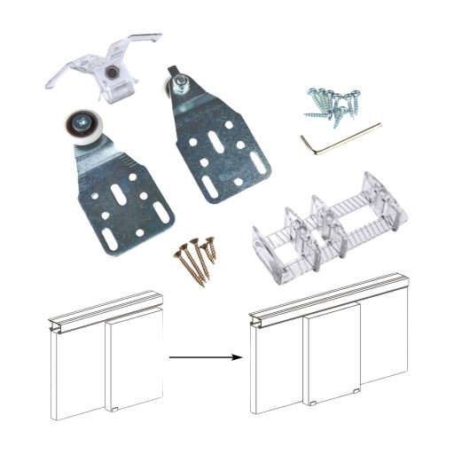 Komplet wózków na dodatkowe skrzydło pozwalający rozbudować zestaw do szafy dwudrzwiowej o trzecie skrzydło.