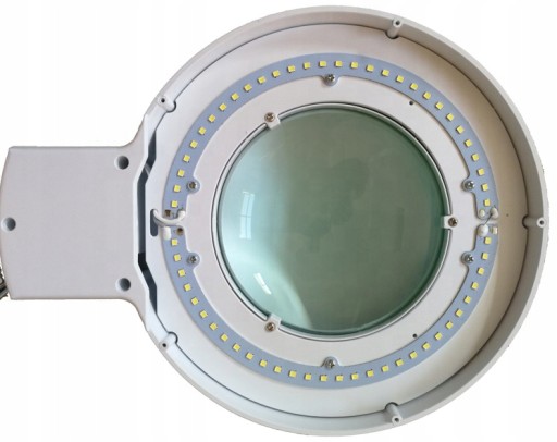 Lampa z lupą przeznaczona jest do pracy na blacie stołu. Powiększenie obserwowanego obiektu realizowane jest przy pomocy szklanej soczewki o średnicy 127mm i powiększeniu optycznym 5D. Powiększenie 5 dioptrii to ok. x2,25. W celu zwiększenia komfortu pracy wokół soczewki umieszczono 60 sztuk jasnych diod LED w technologi SMD oświetlającej równomiernie pole robocze. Dzięki równomiernemu rozmieszczeniu diod LED źródło światła nie rzuca cieni. Zaletą zastosowania diod LED jest ich niski pobór mocy (energooszczędne), oraz brak efektu nagrzewania. Lampa wyposażona jest z zamykaną osłonę soczewki. Lampę z powodzeniem można także wykorzystać jako zwykłą lampę biurkową.
