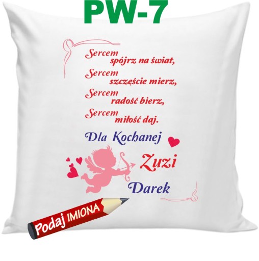 Oferujemy wzruszającą a zarazem praktyczną poduszkę, która codziennie będzie przypominała Twojemu Ukochanemu (Ukochanej) o uczuciu jakim go darzysz. Poduszka z Imieniem z życzeniami, dedykacją.