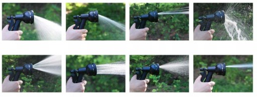 Prezentowany wąż ogrodowy posiada pistolet obsługujący 8 funkcji: