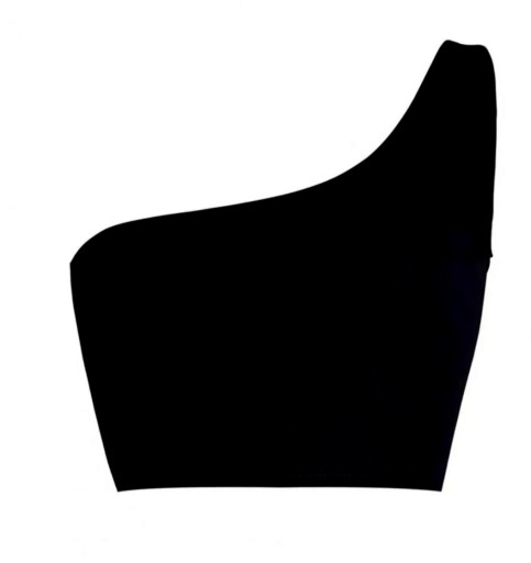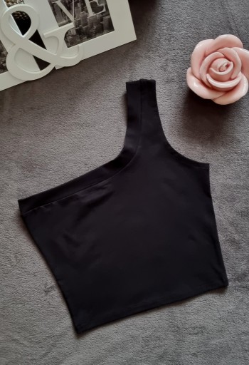 CZARNY TOP TOPIK krótka BLUZKA na JEDNO RAMIĘ odkryte ramiona S/M