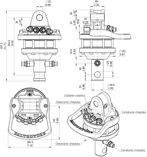 Rotator ten jest solidnym i mocnym rozwiązaniem do montażu na dźwigu przez łącznik, odpowiednie dla małych pojazdów rolniczych i leśnych.