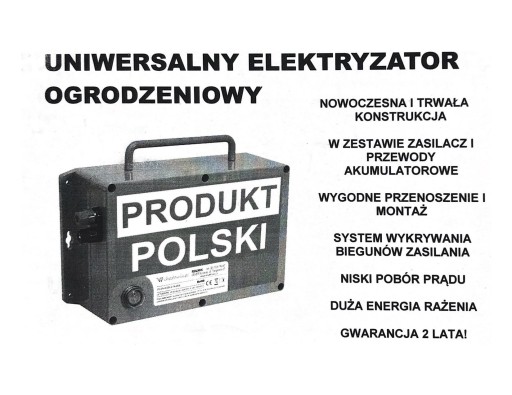 Zawartość: elektryzator, kable do akumulatora, zasilacz, instrukcja.