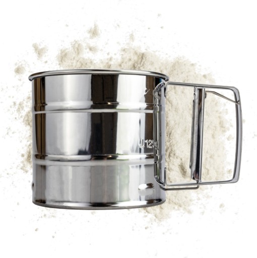 ✔️ W zewnętrznej części przesiewacza umieszczono miarkę, która zdecydowanie ułatwia pracę w kuchni.