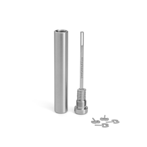 - 1 kapsułę Cryptosteel Capsule w kolorze stalowym (długość 102 mm, średnica 16 mm),