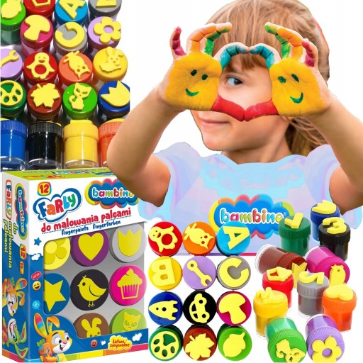 BAMBINO Farby do Malowania Palcami 12 kolorów + 12 różnych wzorów stempli