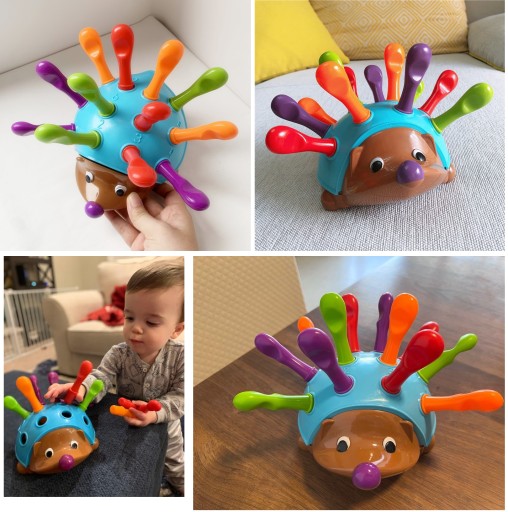 ✔️ Jeżyk to wyjątkowa i kolorowa gra zręcznościowa, która z pewnością zainteresuje każde dziecko na długi czas! Zabawka ta pozwoli Twojemu dziecku na naukę w sposób zabawny i kreatywny. Dzięki kolorowym kolcom, które trzeba dopasować do otworów na grzbiecie jeża, dziecko uczy się rozpoznawać kolory, kształty oraz liczyć od 1 do 12. Przy każdym otworze znajduje się wypukła cyfra, która pomaga w nauce pierwszych liczb.