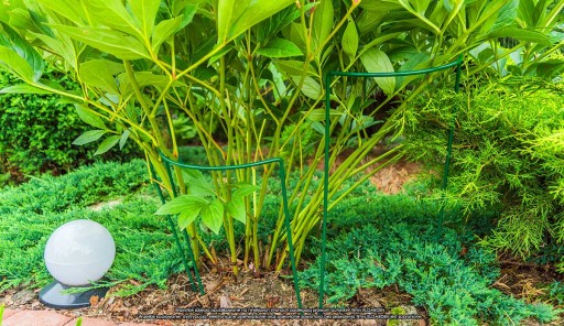 Podpory można bez najmniejszego problemu powiększać, dokupując kolejne półkola. W taki sposob można stworzyć doskonałą podporę np. dla piwonii, które słyną z opadania całych kwiatów na ziemię.