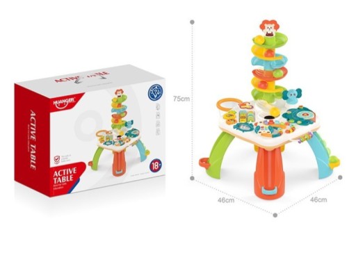 Wprowadź swoje dziecko w świat nauki i zabawy z naszym stołem edukacyjnym! Nasz wszechstronny, interaktywny stolik został zaprojektowany tak, aby stymulować kreatywność malucha i zapewniać mu zaangażowanie na wiele godzin. Dzięki łatwemu do usunięcia panelowi, obrotowym elementom, zjeżdżalniom i muzycznemu tukanowi nigdy nie będziesz musiał się martwić, że maluch się znudzi. Przynieś dziś do domu ten bezpieczny i solidny stół i obserwuj, jak Twoje dziecko odkrywa głębię swojej wyobraźni!