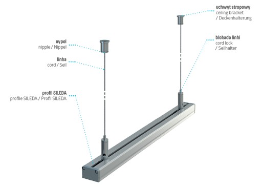 Zawiesie do profili LUMINES to produkt przeznaczony do stworzenia oświetlenia wiszącego w postaci lamp LED.
