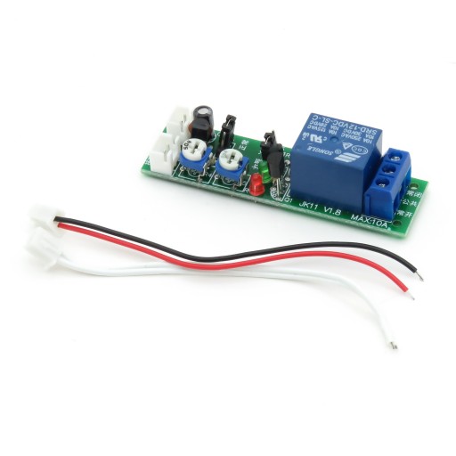 Moduł z przekaźnikiem 12 V oraz układem czasowym. Pozwala na realizację cyklicznego włączania (T1) i wyłączania (T2) urządzenia na określony za pomocą potencjometrów. Może również działać w trybie pojedynczego wyzwolenia, który umożliwia włączenie urządzenia po podaniu sygnału na określony czas (T1). Czas pracy może być regulowany w zakresie od 1 s do 100 s lub od 1 s do 15 min. Przekaźnik ma dwa obwody wyjściowe: NC – normalnie zamknięty i NO – normalnie otwarty.