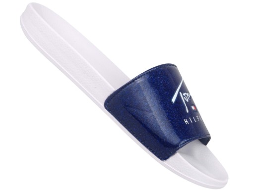 TOMMY HILFIGER SMILE PRINT POOL SLIDE. Niezawodny model klapek uwielbiany przez klientów. Idealnie nadają się na plażę, basen czy spacery w ciepłe dni.