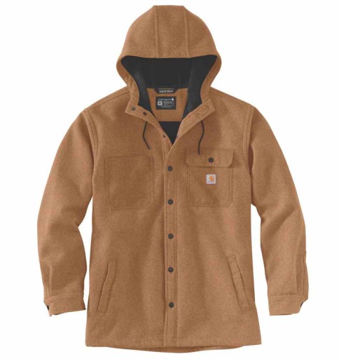 Poruszaj się swobodnie w lekkim deszczu, wietrze i zimnie. Ta męska koszula / kurtka CARHARTT to wytrzymała warstwa na dni, kiedy potrzebujesz pełnego zakrycia i pełnego zakresu ruchów. Ciężki materiał twill jest ocieplony polarem i ma obszerny trzyczęściowy kaptur. Posiada membranę Wind Fighter® chroniącą przed wiatrem, a materiał posiada wodoodporne wykończenie chroniące przed lekkim deszczem. Najważniejsze funkcje i elementy bluzy: Materiał: 100% poliester Twill z hydrofobową powłoką Rain Defender® o gramaturze 451g/m 2 Klejona poliestrowa podszewka z polaru zapewnia ciepło Elastyczny materiał Rugged Flex® zaprojektowany do swobodnego poruszania się Trwała hydrofobowość Rain Defender (DWR) zapewnia suchość w lekkim deszczu Technologia Wind Fighter® chroni przed przenikliwym wiatrem Z przodu zapięcie na zatrzaski Obszerny trzy-częściowy kaptur podszyty polarem, ściągany sznurem Mankiety rękawów regulowane na zatrzaski Dwie kieszenie na piersu, lewa z klapką i przegrodą na ołówek Dwie przednie kieszenie do ogrzewania dłoni Rain Defender®, (DWR) Trwała hydrofobowa powłoka dzięki której krople wody odbijają się od powierzchni materiału. Dzięki takiemu wykończeniu zewnętrzna warstwa materiału nie nasiąka wodą. Wind Fighter®, technologia, która chroni przed przenikliwym wiatrem. Produkty z tą technologią zapobiegają przedostaniu się wiatru przez tkaninę i docieraniu do skóry Dokładne wymiary +/-1cm S M L XL XXL Szerokość pod pachami 54 59 64 69 75 Długość rękawa od pachy 53 53 54 54 54 Długość rękawa od ramienia 66 66 66 66 67 Długość całkowita z tyłu od wszycia kaptura 77 78 79 80 81