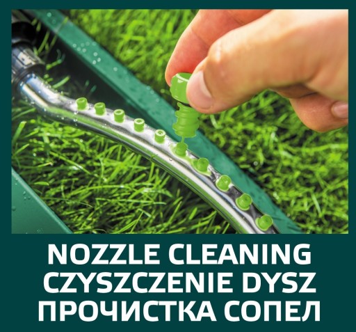 Urządzenie wyróżnia się łatwą regulacją zraszania, co znacznie ułatwia indywidualne dostosowanie jego zakresu do własnych potrzeb. Rama wytwarzana jest z trwałego tworzywa sztucznego. Do zestawu dołączana jest specjalistyczna igła, umożliwiająca udrażnianie dysz i tym samym – przedłużająca żywotność zraszacza o kolejne sezony.