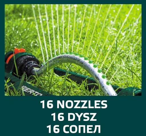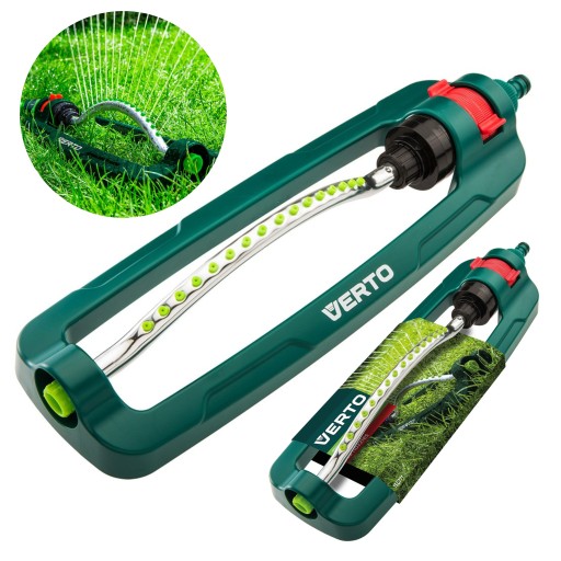 Zraszacz oscylacyjny, powierzchnia zraszania 13x18 m, 16 dyszy zraszających, igła do udrażniania dysz 15G771 VERTO to niezbędny element efektywnego nawadniania ogrodu, działki, trawnika oraz upraw. Ten model charakteryzuje się powierzchnią zraszania obszaru do nawet 13 x 18 m. Metalowy element zraszający posiada wbudowanych 16 dysz, które równomiernie rozprowadzają wodę.
