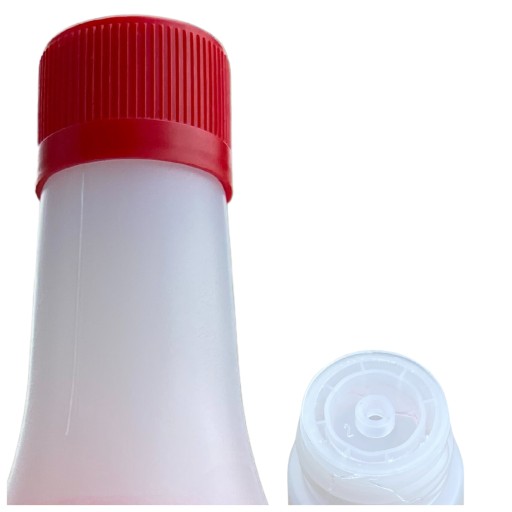 Nowy bezpieczny korek wraz z wbudowanym już dziubkiem zapewniają kontrolę przed nieporządanym wyciekiem płynu w trakcie transportu.