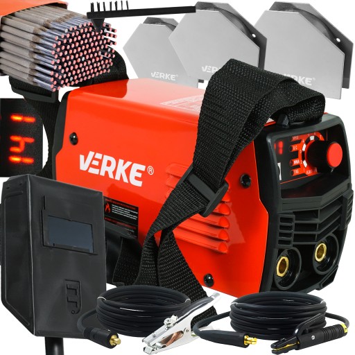 Spawarka inwertorowa VERKE to najwyższej klasy urządzenie spawalnicze do prac metodą MMA (spawanie szeroką gamą elektrod otulonych) oraz TIG LIFT (za pomocą specjalnego uchwytu TIG z zaworkiem, zapalanie łuku odbywa się przez lekkie potarcie elektrody nietopliwej o spawany materiał). Płynna regulacja i cyfrowy wyświetlacz nastawy prądu umożliwiają dobranie optymalnych parametrów w zależności od rodzaju i grubości obrabianych materiałów oraz wykorzystywanych elektrod. Urządzenie posiada zintegrowany system chłodzenia (termostat i wentylator), który zabezpiecza przed przegrzaniem i znacząco wydłuża czas nieprzerwanej pracy. Wyposażone jest w funkcje optymalizacji łuku spawalniczego HOT START (wspiera zajarzanie łuku), ARC FORCE (stabilizuje łuk w przypadku wahnięć jego długości) i ANTI STICK (ogranicza przyklejanie elektrody do obrabianego materiału). Spawarka wykorzystuje standardowe zasilanie sieciowe 230 V. Niewielka waga i kompaktowe gabaryty sprawiają, że urządzenie jest wygodne w transporcie i pracy na wysokości a także bezproblemowe w przechowywaniu.