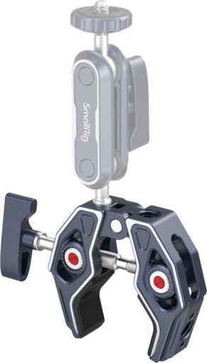 Zacisk obsługuje pręt o minimalnej średnicy 13 mm i powierzchnię o maksymalnej grubości 65 mm, co pozwala szybko przymocować kamery, monitory, światła LED itp.