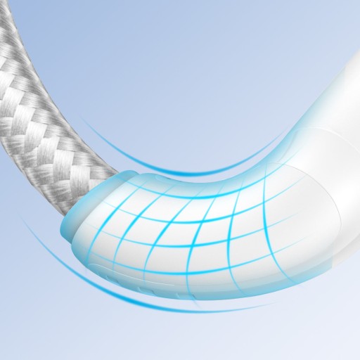 - Wytrzyma wielokrotne zgięcia. Nylonowy oplot jest bardzo gęsty, a wtyczki zostały dodatkowo wzmocnione