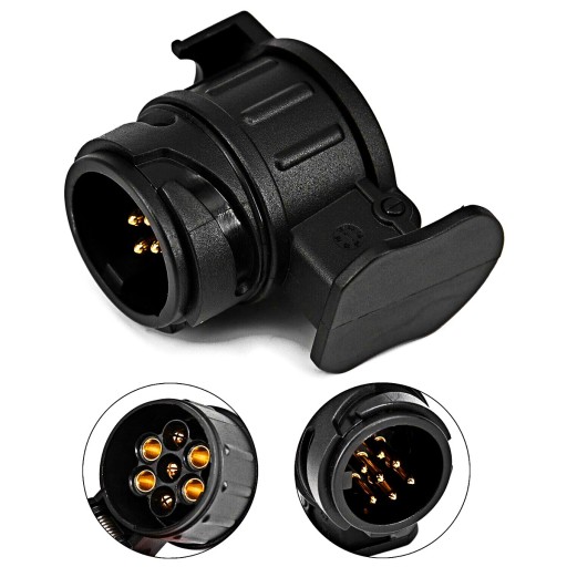 Adapter pozwala podpiąć wtyczkę 7 PIN przyczepy lub bagażnika do gniazda 13 PIN w które wyposażony jest samochód.