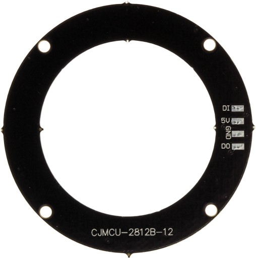 Pierścień składa się z 12 indywidualnie adresowanych diod LED RGB 5050 wraz z zintegrowanym sterownikiem. Moduł może być obsługiwany przez jeden pin mikrokontrolera, Arduino.