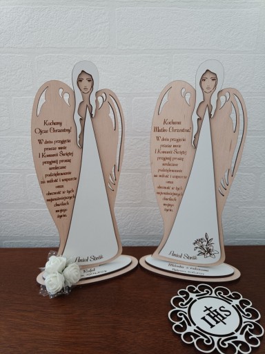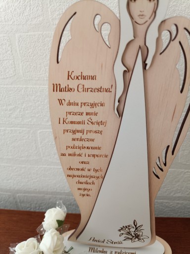 Wyraźny, czytelny grawer w postaci podziękowania dla rodziców chrzestnych lub dziadków. Statuetka w postaci anioła przynosząca za każdym razem miłe, ciepłe wspomnienia!