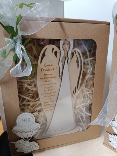 Anioł spakowany w pudełeczku z okienkiem całość gotowa do wręczenia !
