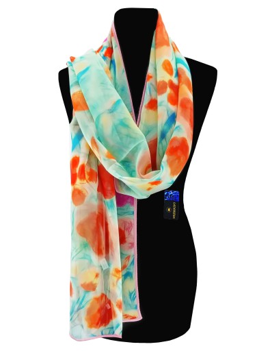 - Szal wykonany z ekologicznych tkanin. Bez sztucznych dodatków. Ręcznie wykańczany i sprawdzany. Znakomita jakość dzięki wysokiej klasy materiałom oraz kontroli jakości na każdym etapie wytwarzania. Tkanina 100% jedwab naturalny najwyższej jakości.