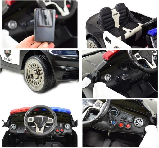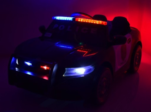 AUTOPOLICJA JC-666zasilane na 12 V z MEGAFONEM POLICYJNY ( dziecko może wydawać komendy jak prawdziwy policjant), miękkimi koła EVA, siedzeniem z ECO SKÓRY.