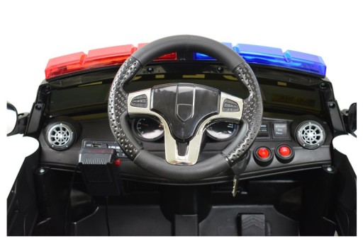 Ciekawym elementem jest oświetlenie pojazdu - świecące światła przednie,oświetlenie tylne działające już po uruchomieniu pojazdu. Światła i dźwięki policyjne uruchamiamy za pomocą dodatkowego włącznika znajdującego się na pulpicie. Megafon policyjny zasilany z akumulatora, uruchamia się go po naciśnięciu bocznego przycisku na megafonie.