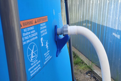 2️⃣ Odkręć plastikowy zacisk, odłącz rurę od basenu.