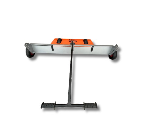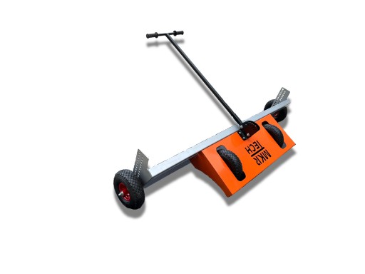 Przedmiotem sprzedaży jest ręczny niwelator terenu o szerokości roboczej płynnie regulowanej od 99 cm do 182 cm. Równiarka wykonana w całości ze stali czarnej, wyposażona w 4 pompowane koła i 30 stopniową regulację głębokości roboczej oraz 5 stopniowa regulacje rączki dzięki czemu łatwo można dostosować sprzęt do wzrostu użytkownika.