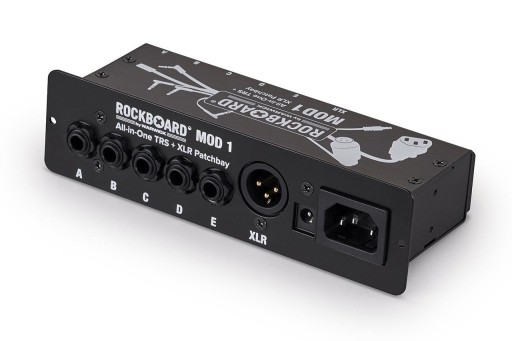RockBoard MOD 1 V2 - All-in-One TRS & XLR to uniwersalny panel krosowy do pedalboardów z serii RockBoard, o nowej odświeżonej konstrukcji i kompaktowej obudowie. Panele te pasują do wszystkich nowych pedalboardów RockBoard® (z wyjątkiem serii DUO) i dysponują różnego typu złączami, aby sprostać wymaganiom stawianym przez tzw. „through box”. Za pomocą tego niewielkiego urządzenia możesz kontrolować sygnały wchodzące do i wychodzące z Twojej pętli efektów. RockBoard® MODs zapewniają centralny punkt dostępu dla twojego instrumentu, wzmacniacza, a także zasilania dzięki złączom IEC oraz 2,1 x 5,5. RockBoard® MOD 1 V2 został zaprojektowany specjalnie dla gitarzystów i basistów. Może być używany do uruchamiania kilku efektów poprzez pętlę efektów wzmacniacza, lub jako centralny punkt dostępu do pedalboardu za pośrednictwem połączeń 4x TRS. Złącze XLR może być używane jako wyjście sygnału z twojego pedalboardu na konsolę lub PA.