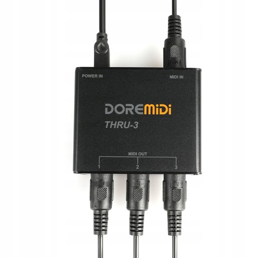 Skrzynka MIDI THRU-3 może służyć do konwersji 1 wejścia MIDI na 3 wyjścia MIDI. Ten produkt ma standardowy interfejs wejściowy MIDI, interfejs wyjściowy MIDI, komunikację o wysokiej wierności, bez opóźnień, ze standardowymi kanałami MIDI 16, może komunikować wszystkie standardowe polecenia MIDI.