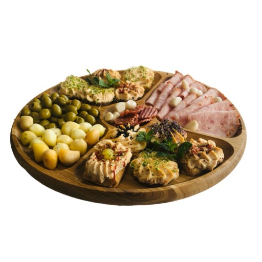Każdą z potraw możesz wyeksponować na deskach obrotowych, które mają podział na strefy. W każdej ze stref możesz umieścić inną przekąskę lub sos. Dodatkowo, dzięki obrotowej funkcji deski goście mają możliwość dotarcia do każdego smakołyku.