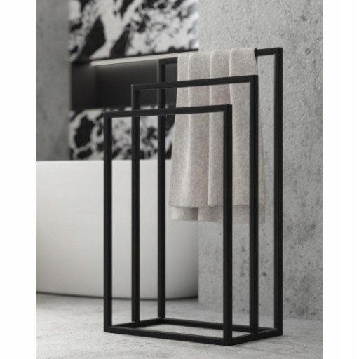 Prezentujemy elegancki stojak na ręczniki łączący solidną konstrukcję z wyjątkowym designem, który doskonale sprawdzi się we wnętrzach urządzonych w stylu nowoczesnym, industrialnym, surowym czy loftowym.