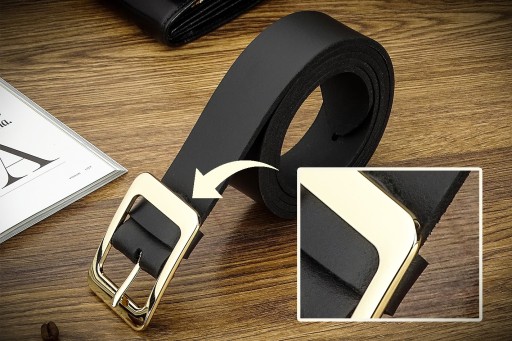 KLAMRA ZŁOTA Damski Pasek do spodni czarny skóra