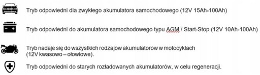 Prostownik ma specjalny tryb pracy, przeznaczony do ładowania akumulatorów dla samochodów z silnikiem START / STOP. Coraz więcej samochodów posiada funkcję wyłączania się silnika podczas postoju. Akumulatory w tych samochodach wymagają specjalnego ładowania.