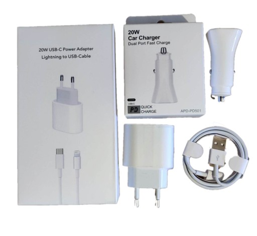 ZESTAW ŁADOWARKA SIECIOWA PLUS ŁADOWARKA SAMOCHODOWA 20W