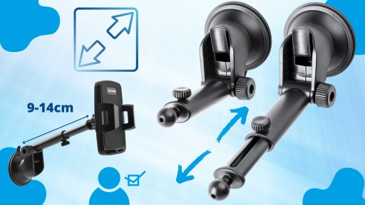 Uchwyt został wyposażony w rozsuwane ramię i silną przyssawkę, które zachwycają swoją prostotą i jednoczesną funkcjonalnością.